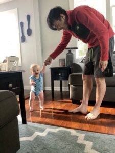 Eating: He drinks 5-6 bottles per day that are 6 oz. I give him breakfast in the morning, usually an egg and strawberry or oatmeal. He’ll have avocado and some fruit for lunch and veggies with some chicken for dinner. We’re still doing a mixture of purees and chunks of food.
